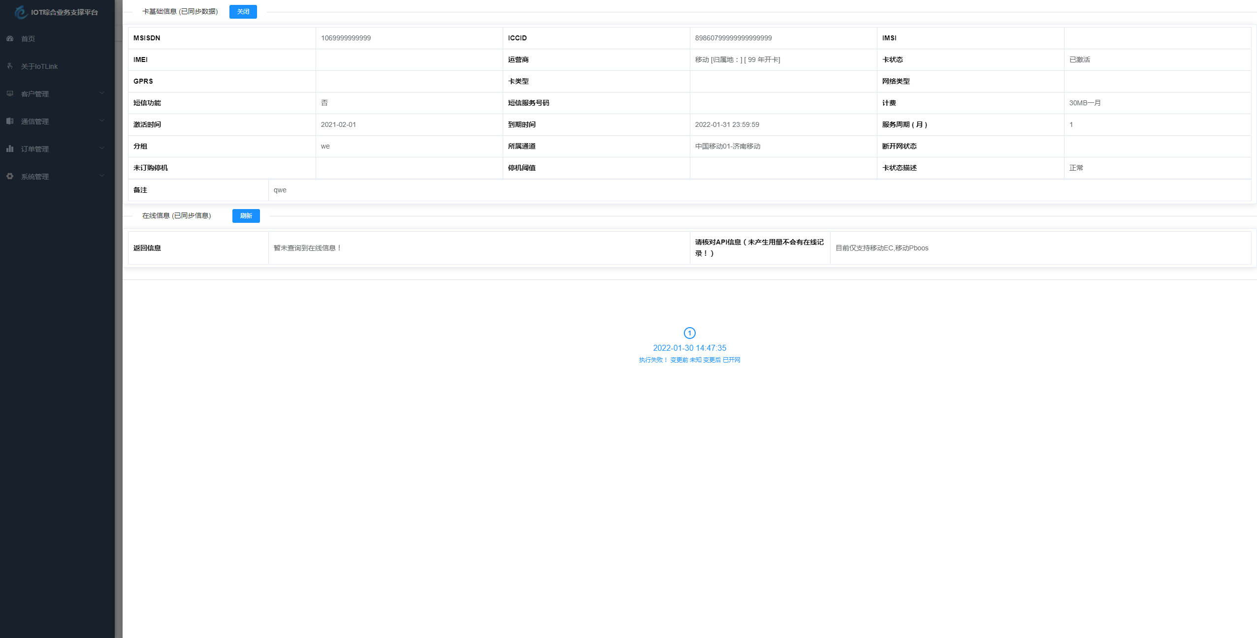 物联网管理系统源码 号卡智能管理平台 轻量级物联网综合业务支撑平台站长KING2个月前更新关注私信07255 简介: 物联网管理系统源码 号卡智能管理平台 轻量级物联网综合业务支撑平台 基于 SpringBoot、Vue、Mybatis、RabbitMq、Mysql、Redis 等开发的轻量级的物联网综合业务支撑平台。支持物联网卡、物联网模组、卡+模组融合管理。提供状态、资费、客户、进销存、合同、订单、续费、充值、诊断、账单等功能。 平台可同时接入中国移动、中国电信、中国联通、第三方物联网卡进行统一管理。逐步完善平台,助您快速接入物联网,让万物互联更简单。 图片: © 版权声明文章版权归作者所有,未经允许请勿转载。THE END网赚资源 喜欢就支持一下吧点赞55 分享QQ空间微博QQ好友海报分享复制链接收藏