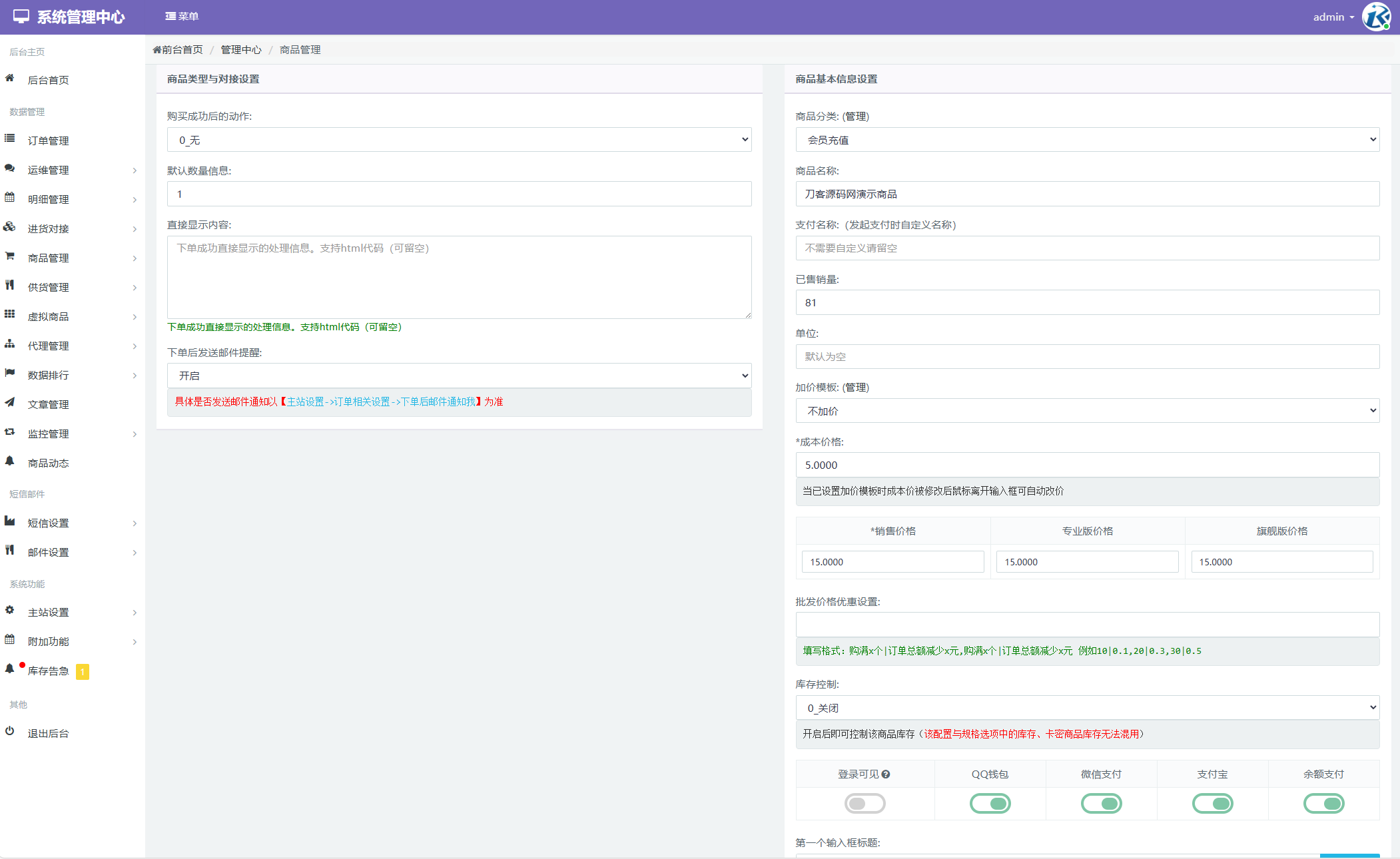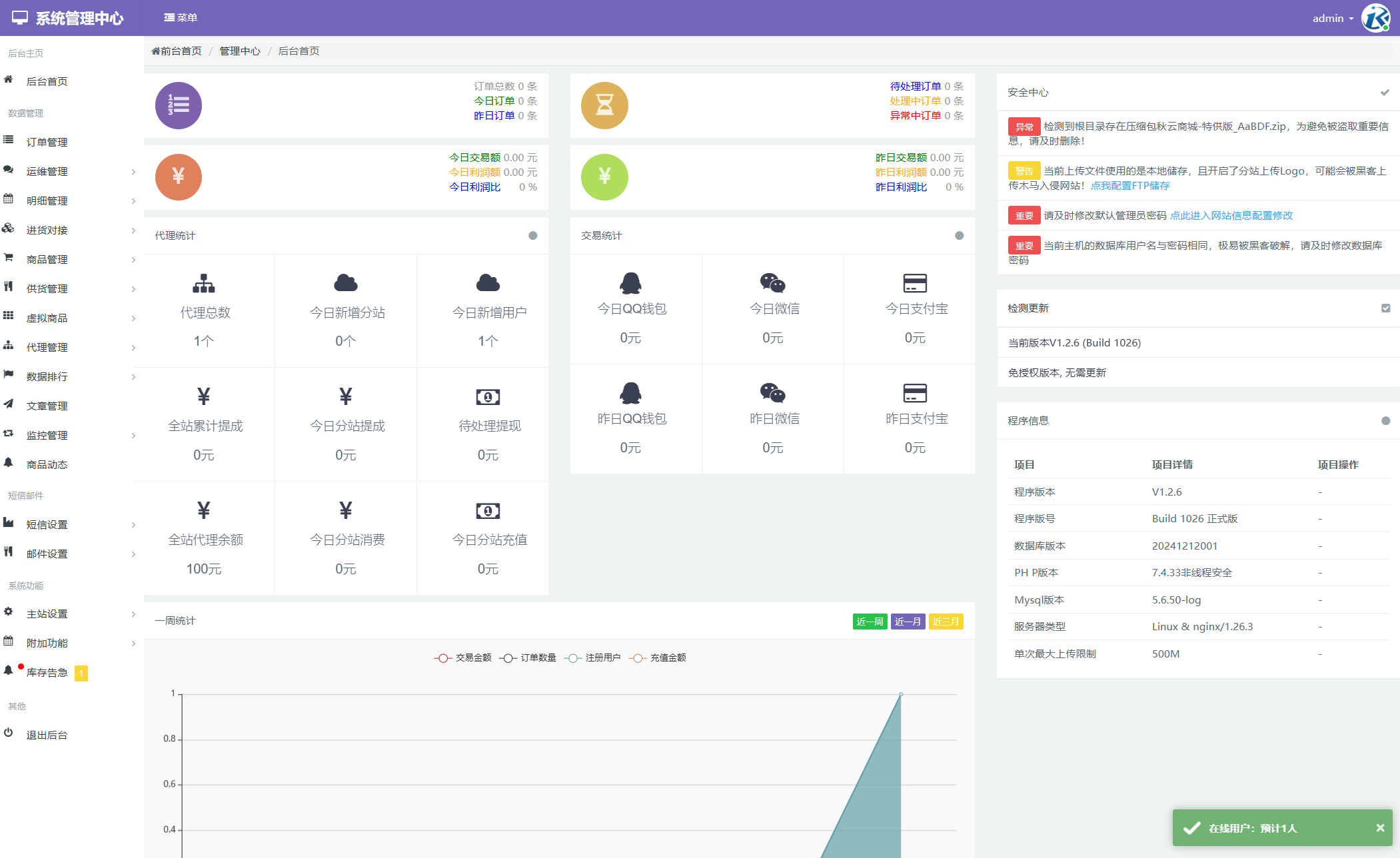 最新彩虹云商城二开Pro美化版 新增超多功能 全开源站长KING1个月前更新关注私信07936 简介: 最新彩虹云商城二开Pro美化版 新增超多功能 全开源 测试环境:Nginx + PHP7.4 + MySQL 访问域名进行安装 该有的功能全都有 完美可直接运营 功能介绍: -用户登录注册页面独家美化-后台登录页美化-后台首页美化/信息详细更易了解-含新版供货商系统-新增支付通道站内自动轮询系统-新增多种分站信息排行榜-自带数据修复工具-内置两种批量上架插件-【特殊功能】网站数据展示自定义 图片: 总后台: © 版权声明文章版权归作者所有,未经允许请勿转载。THE END网赚资源 喜欢就支持一下吧点赞36 分享QQ空间微博QQ好友海报分享复制链接收藏